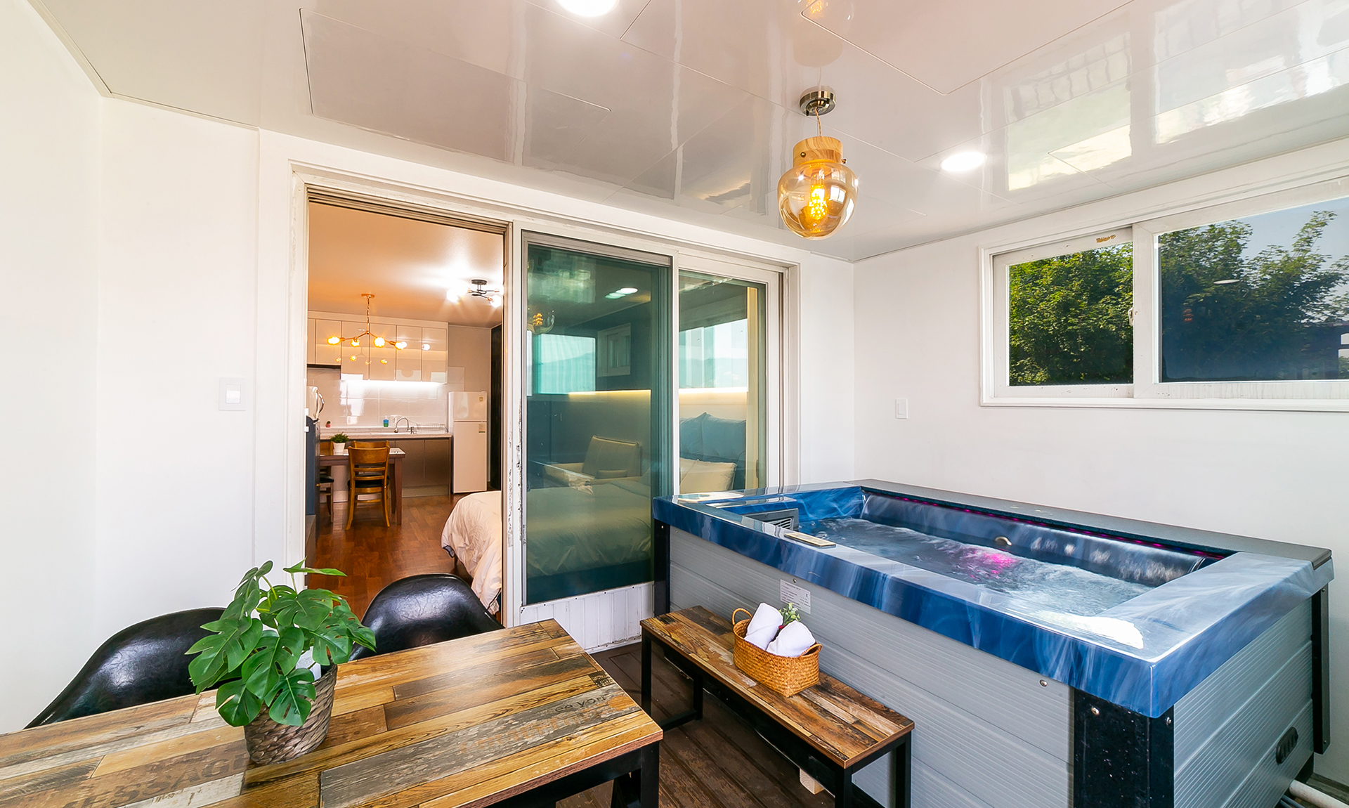 B동 1층에 위치한 객실로, 객실 바로 앞에서 스파와 바베큐가 이용가능합니다.