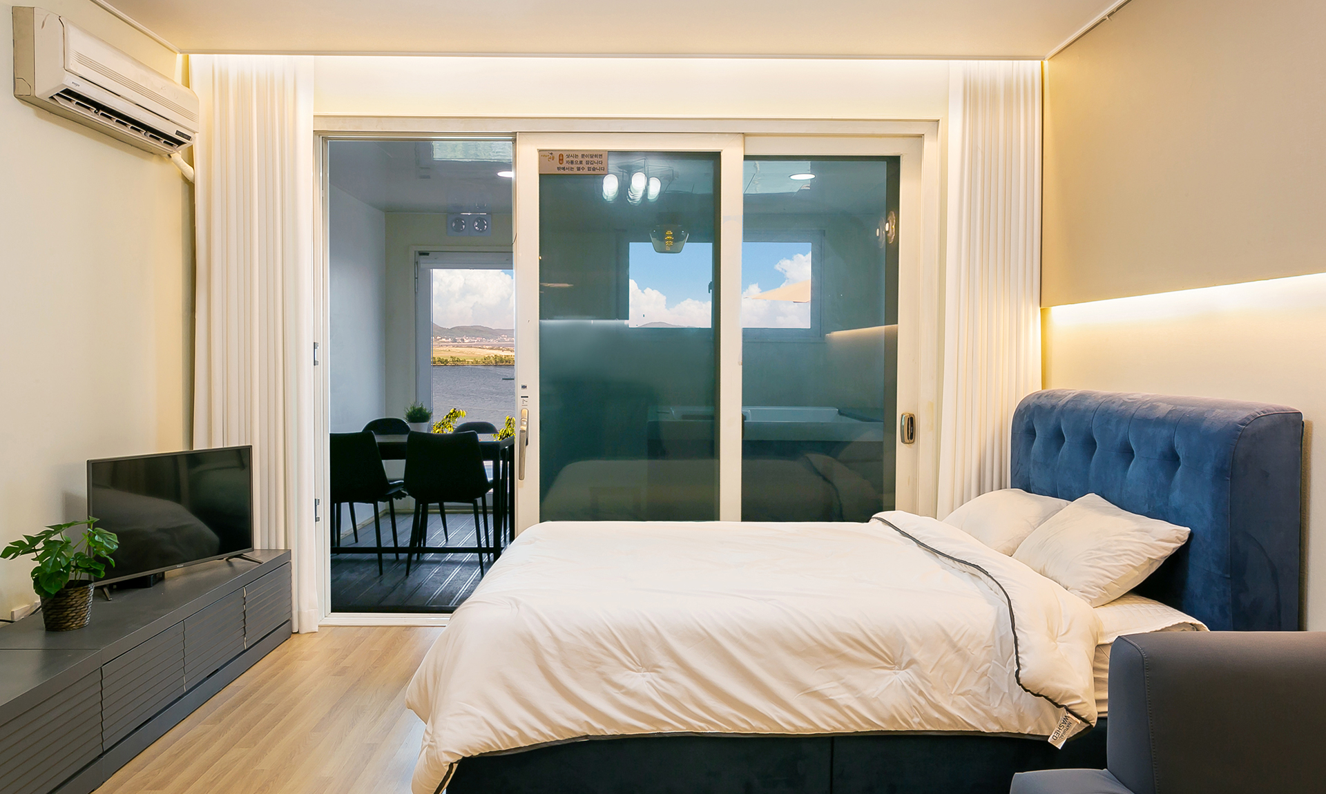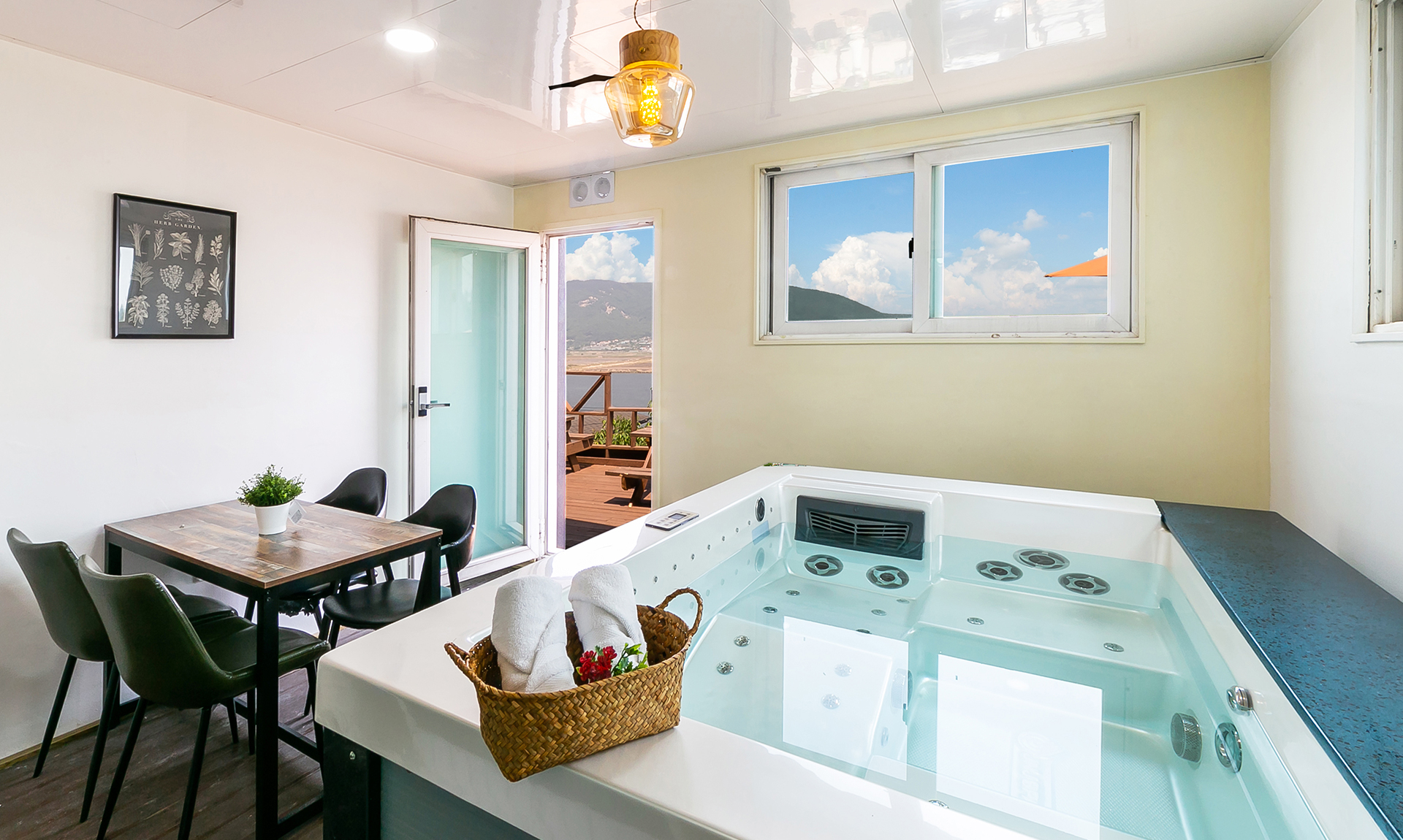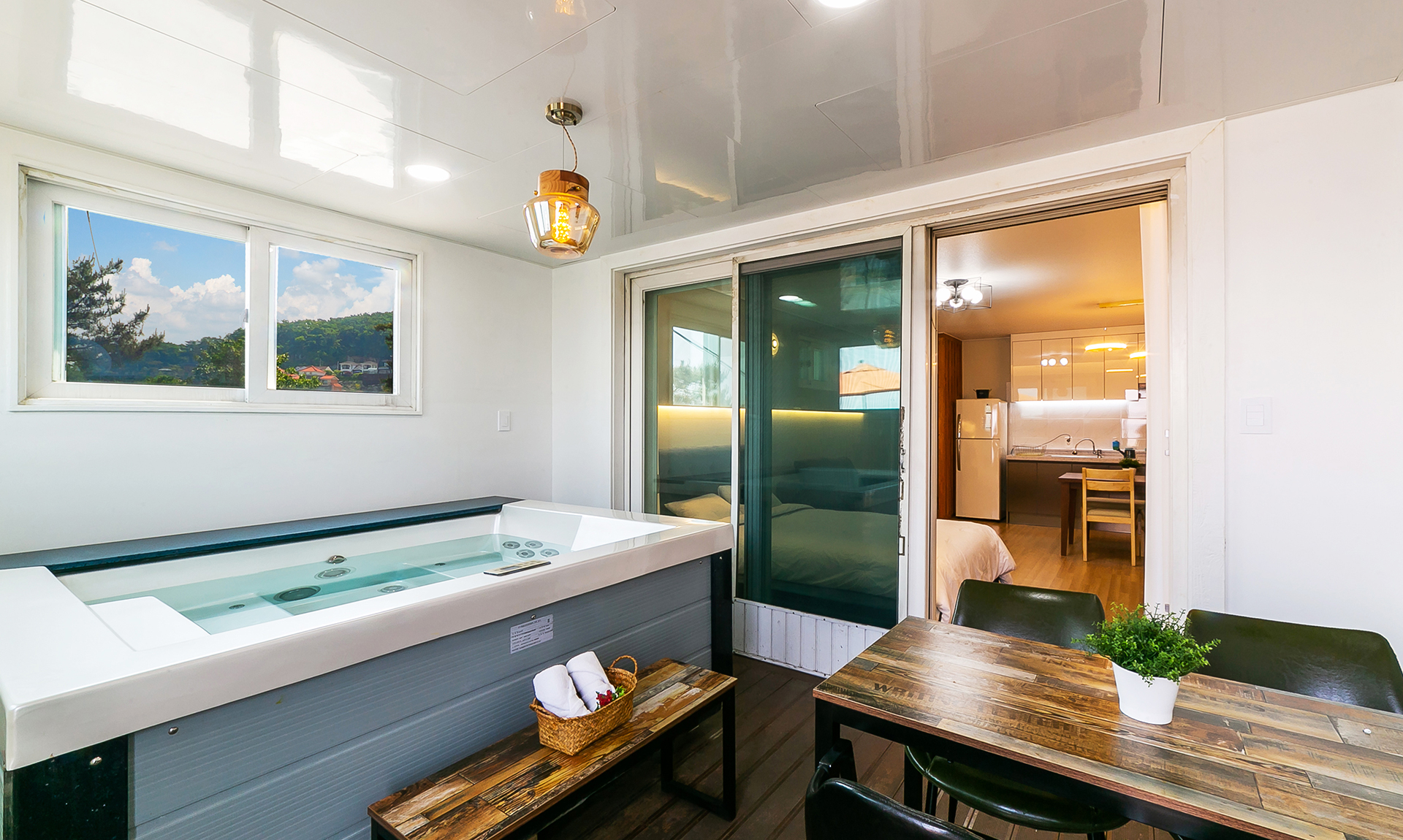 B동 1층에 위치한 객실로, 객실 바로 앞에서 스파와 바베큐가 이용가능합니다.