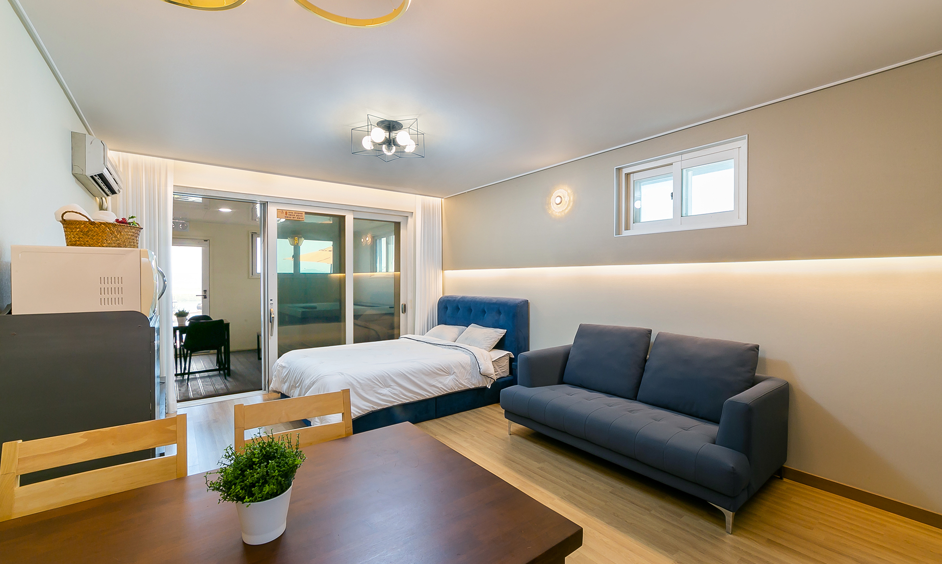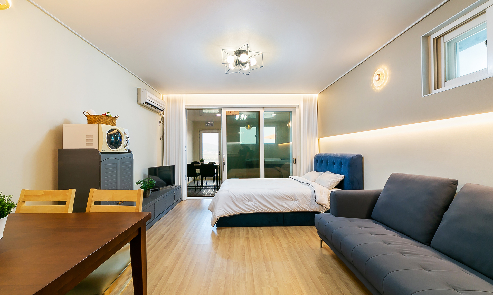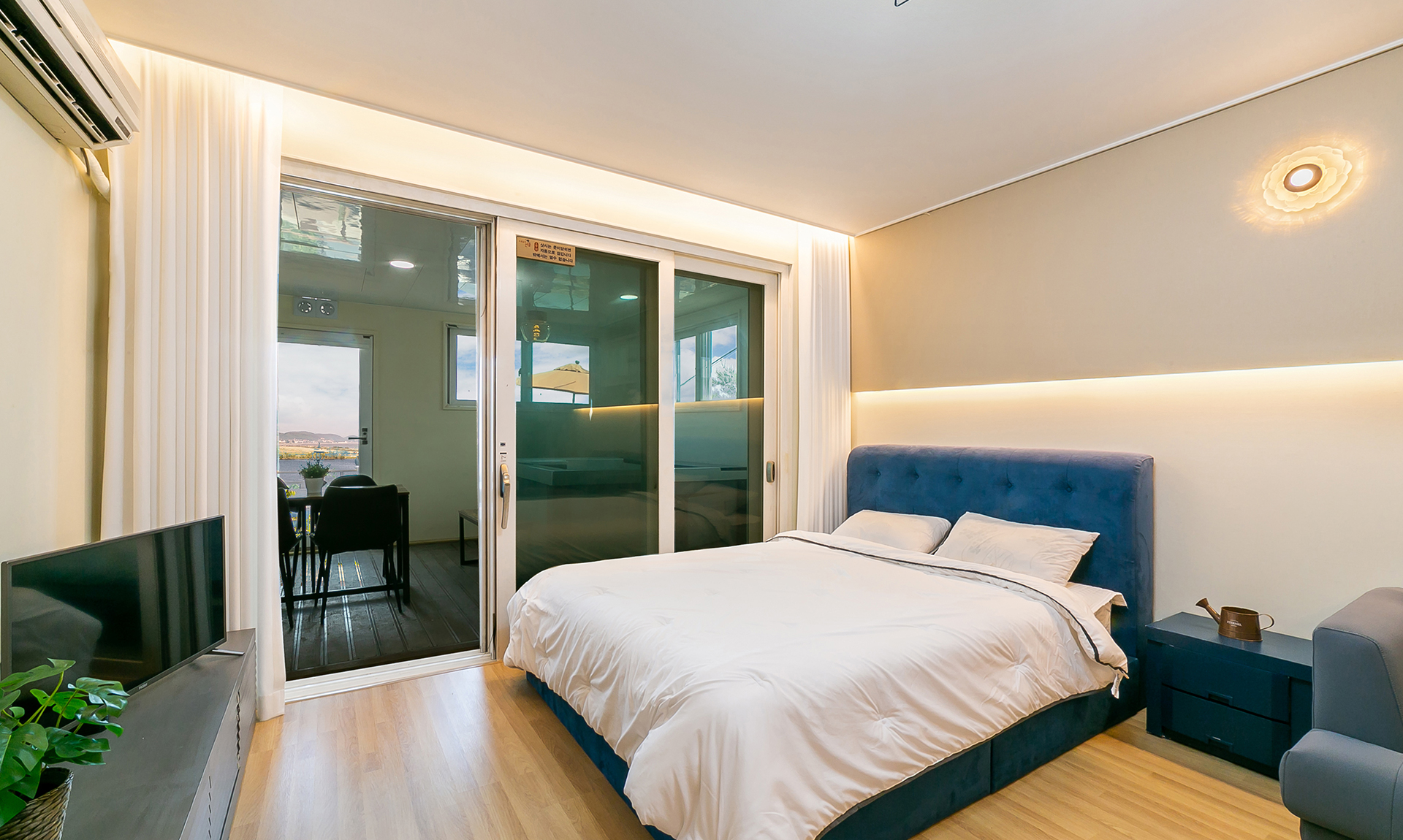 B동 1층에 위치한 객실로, 객실 바로 앞에서 스파와 바베큐가 이용가능합니다.