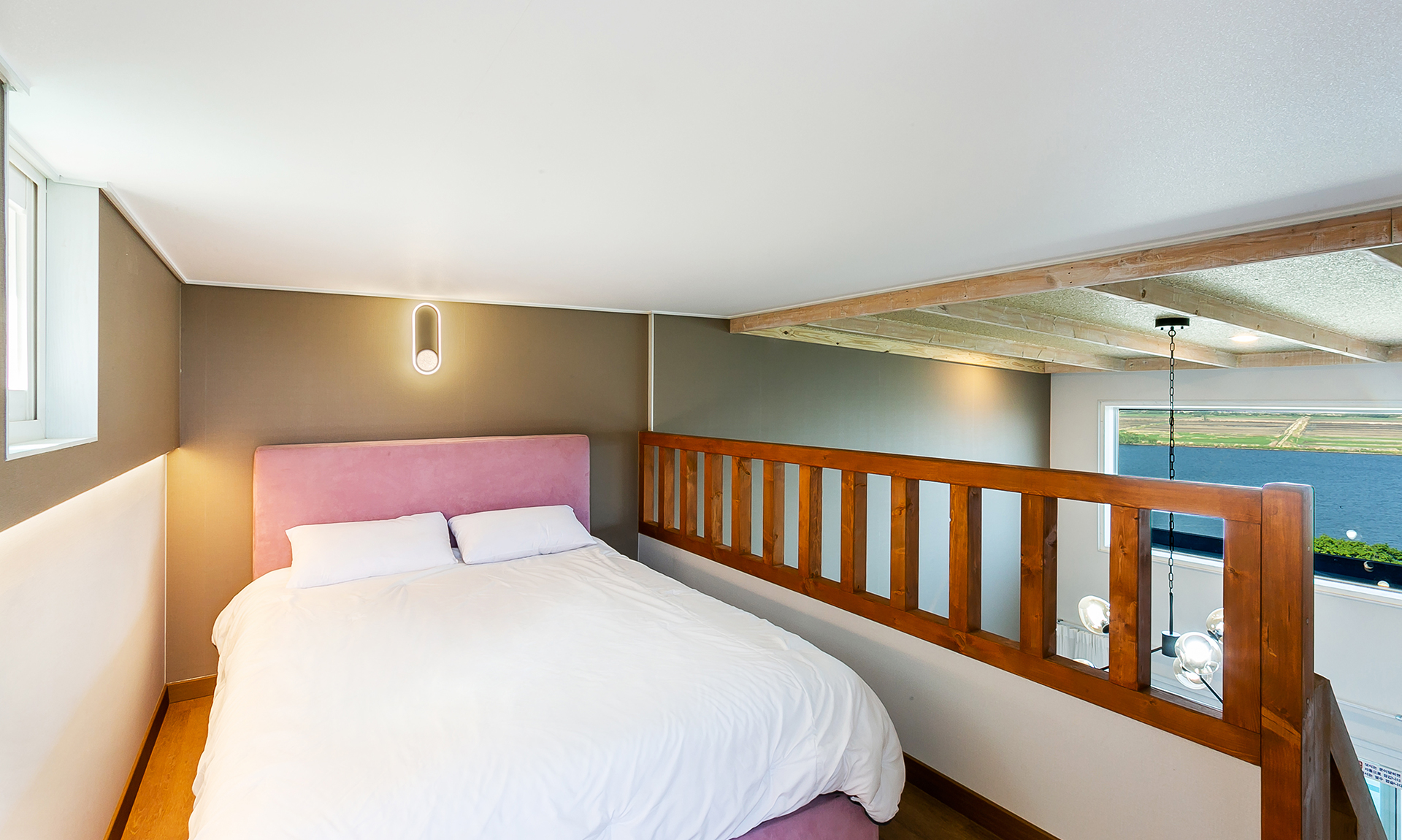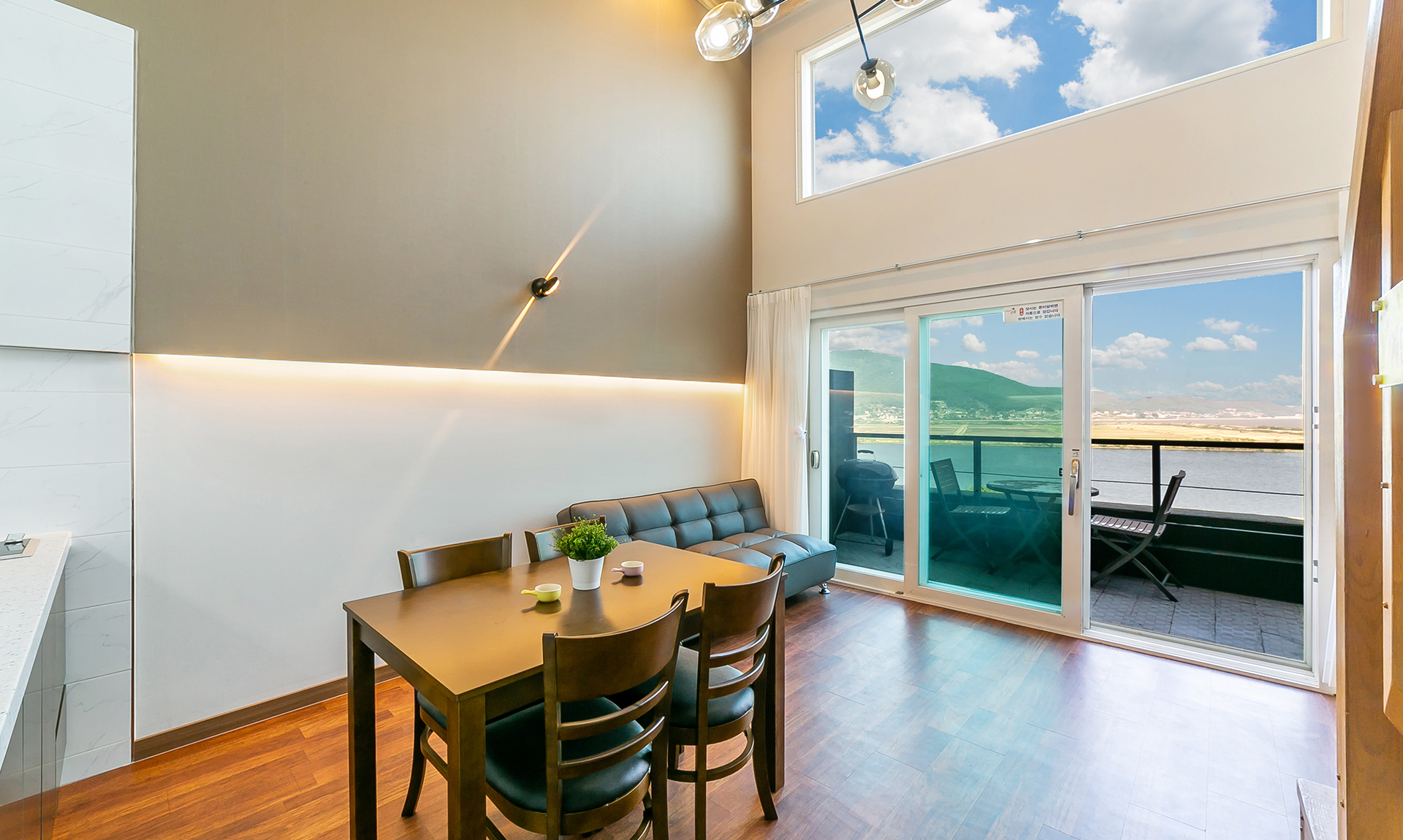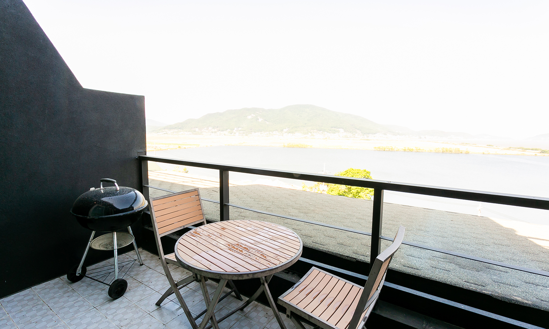 B동 2층에 위치한 객실로 베란다에서 바베큐 이용이 가능하고,