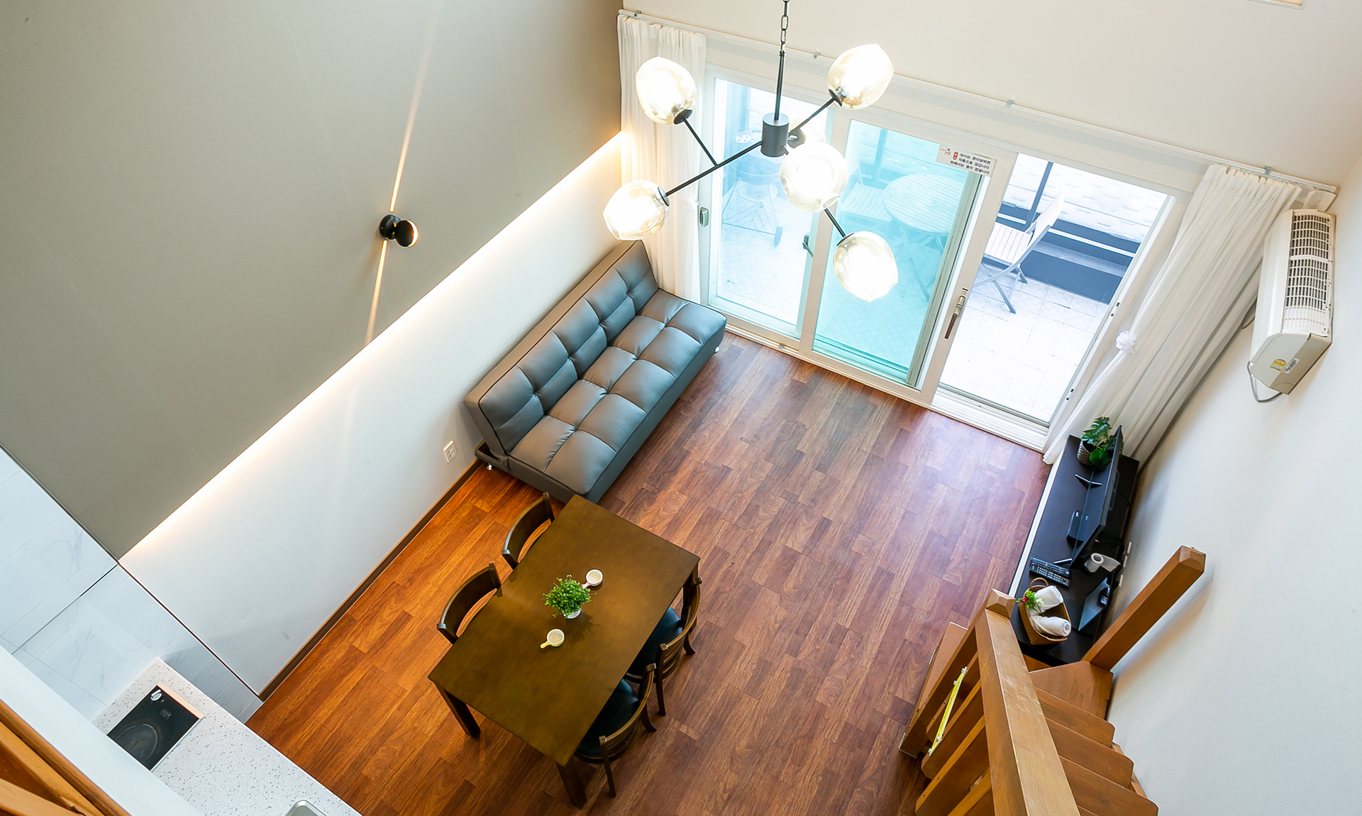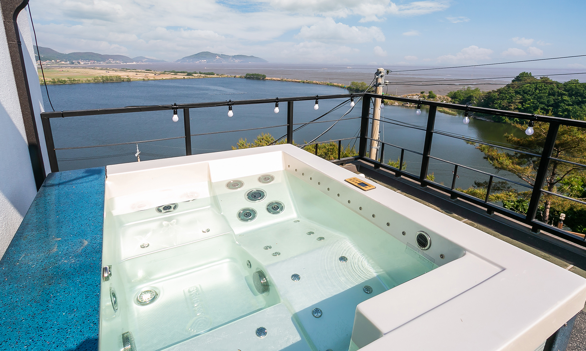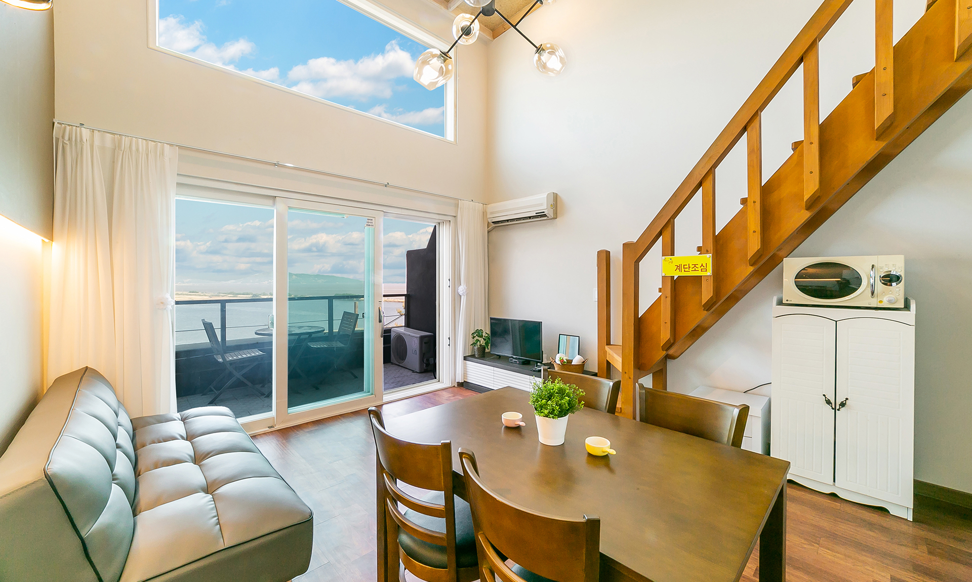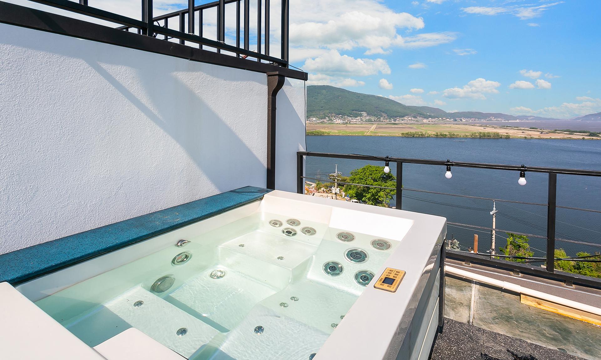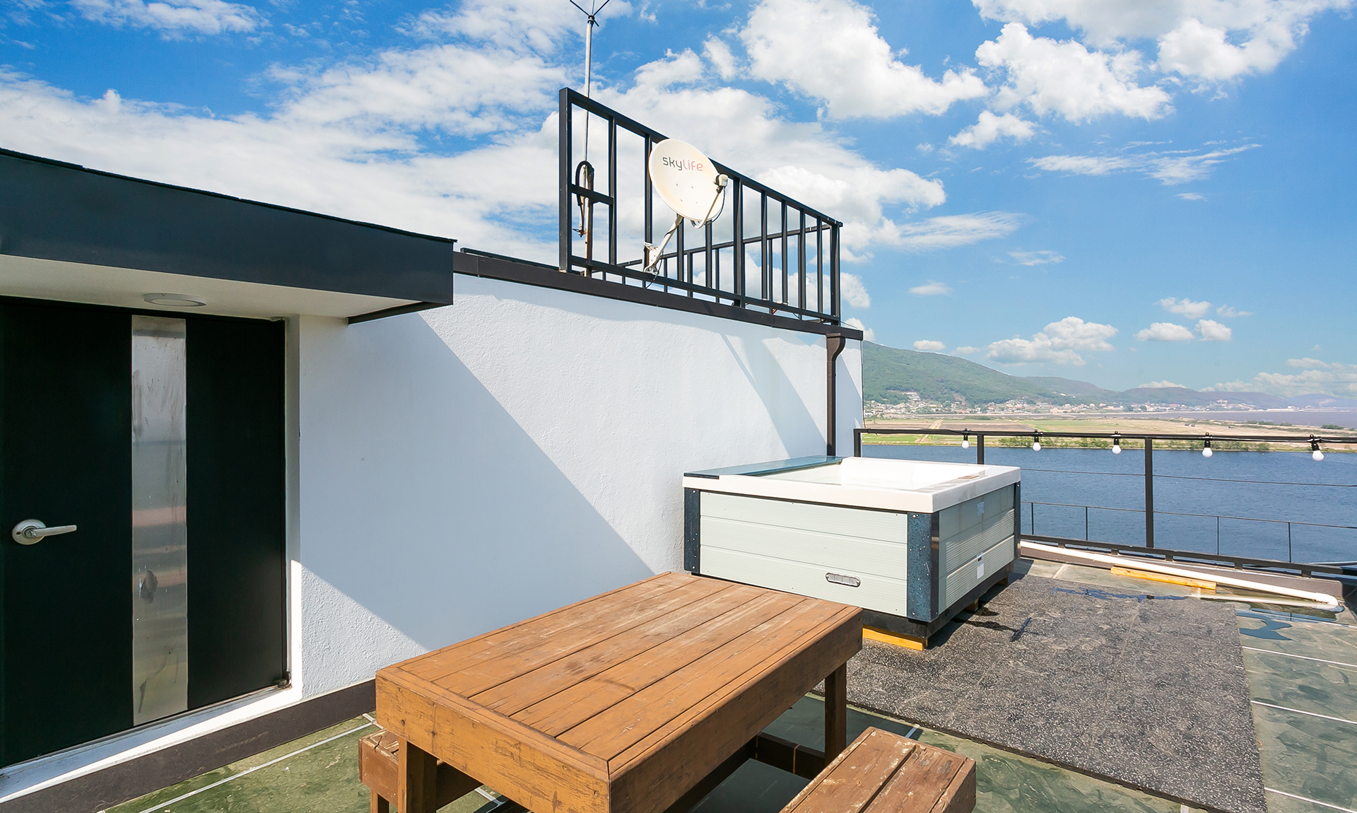 복층에서 연결된 옥상에서 스파이용이 가능합니다. (외부라서 하절기만 운영/동절기 미운영)