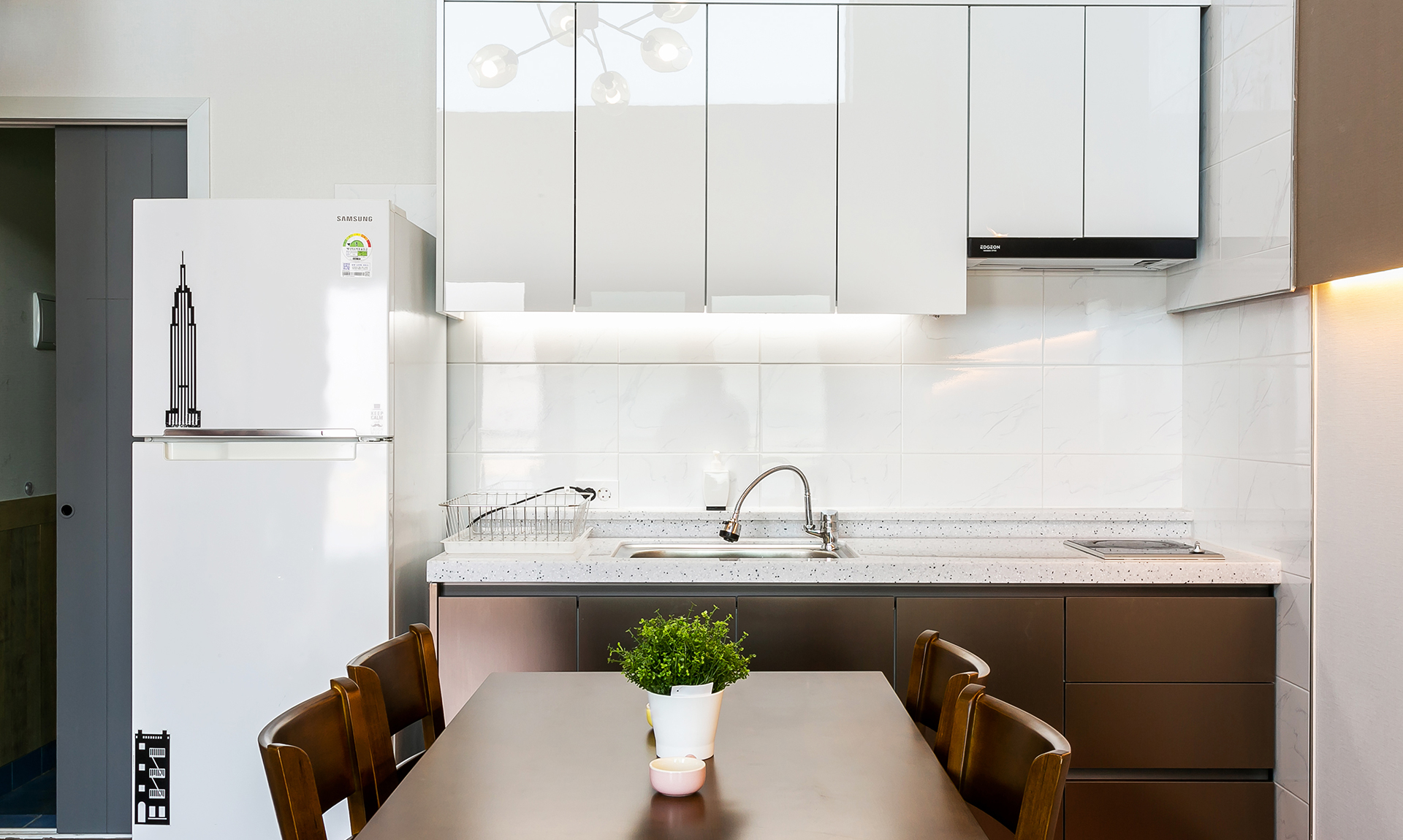 - 시설 : TV, 에어컨, 침대, 침구, 스카이라이프, 냉장고, 식탁, 전기쿡탑, 전기밥솥, 전자렌지, 취사도구 및 주방시설, 화장실, 샤워시설 (헤어드라이어, 치약, 비누, 샴푸) 등