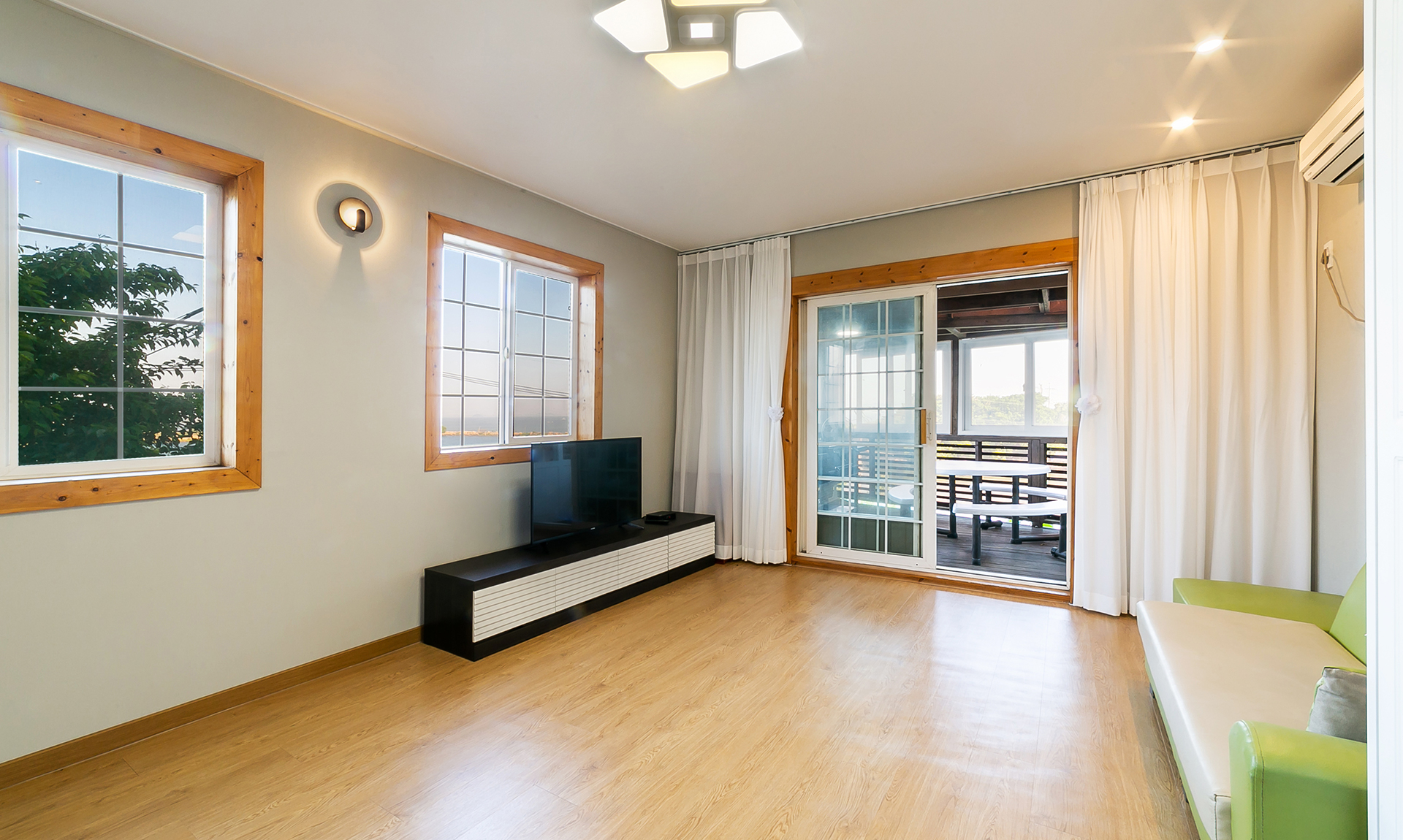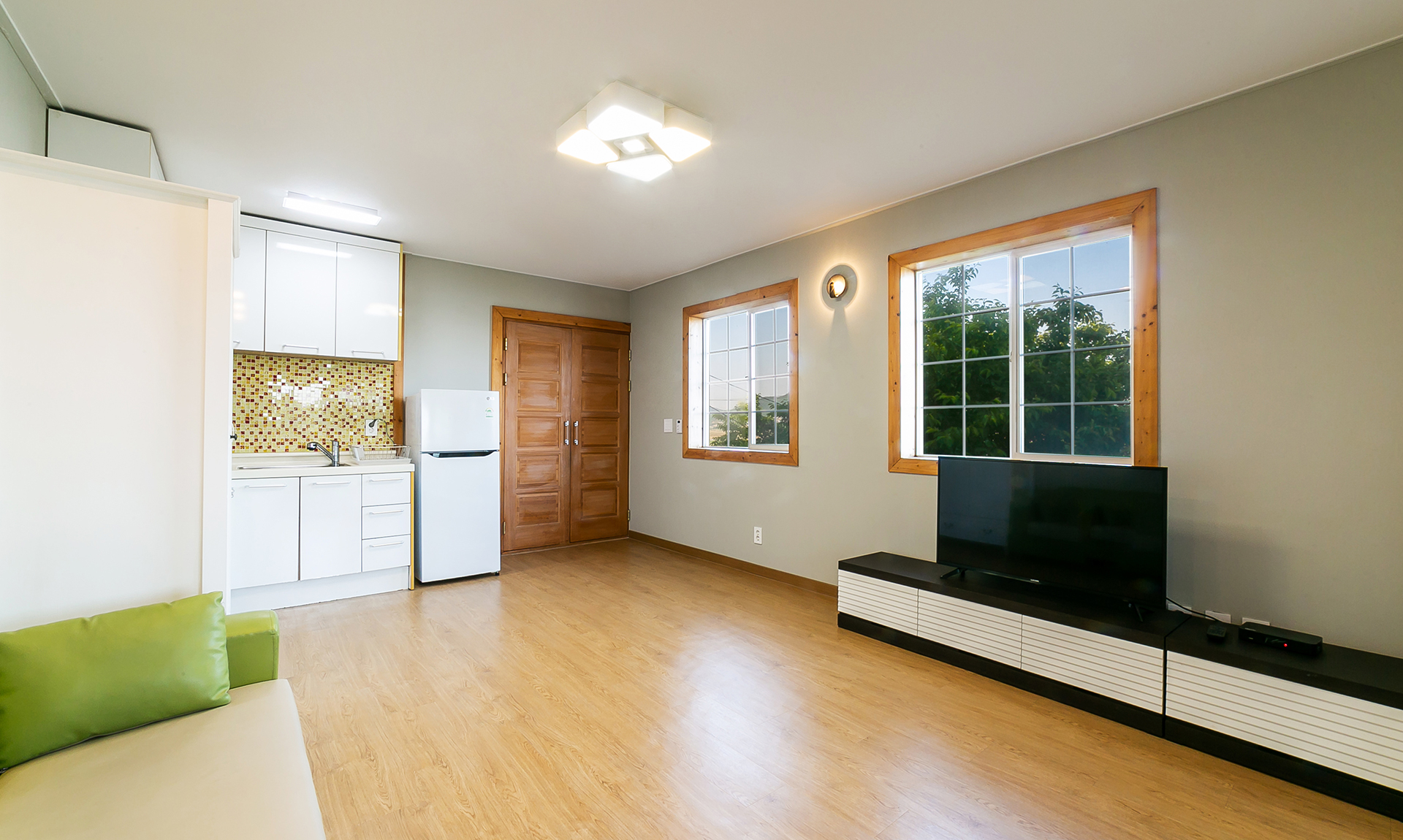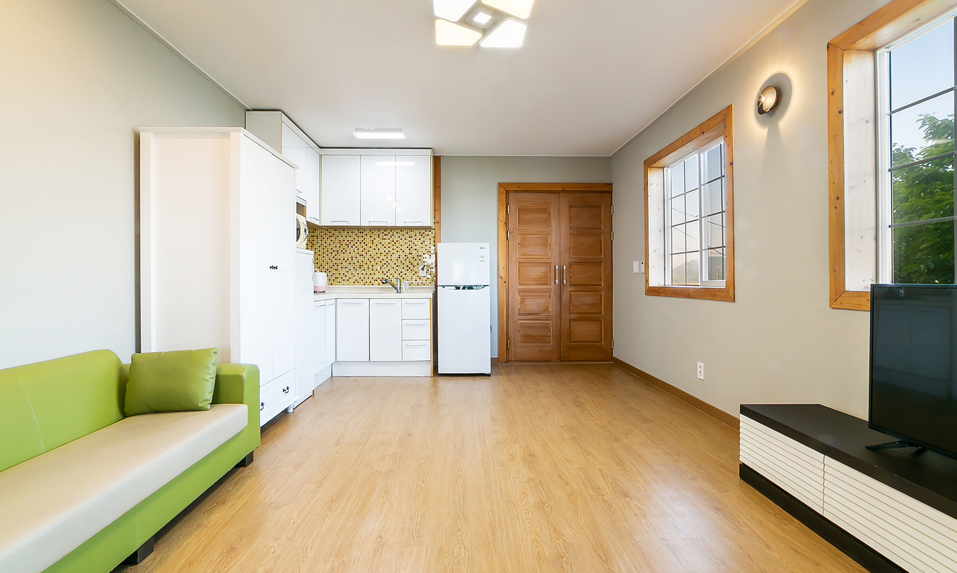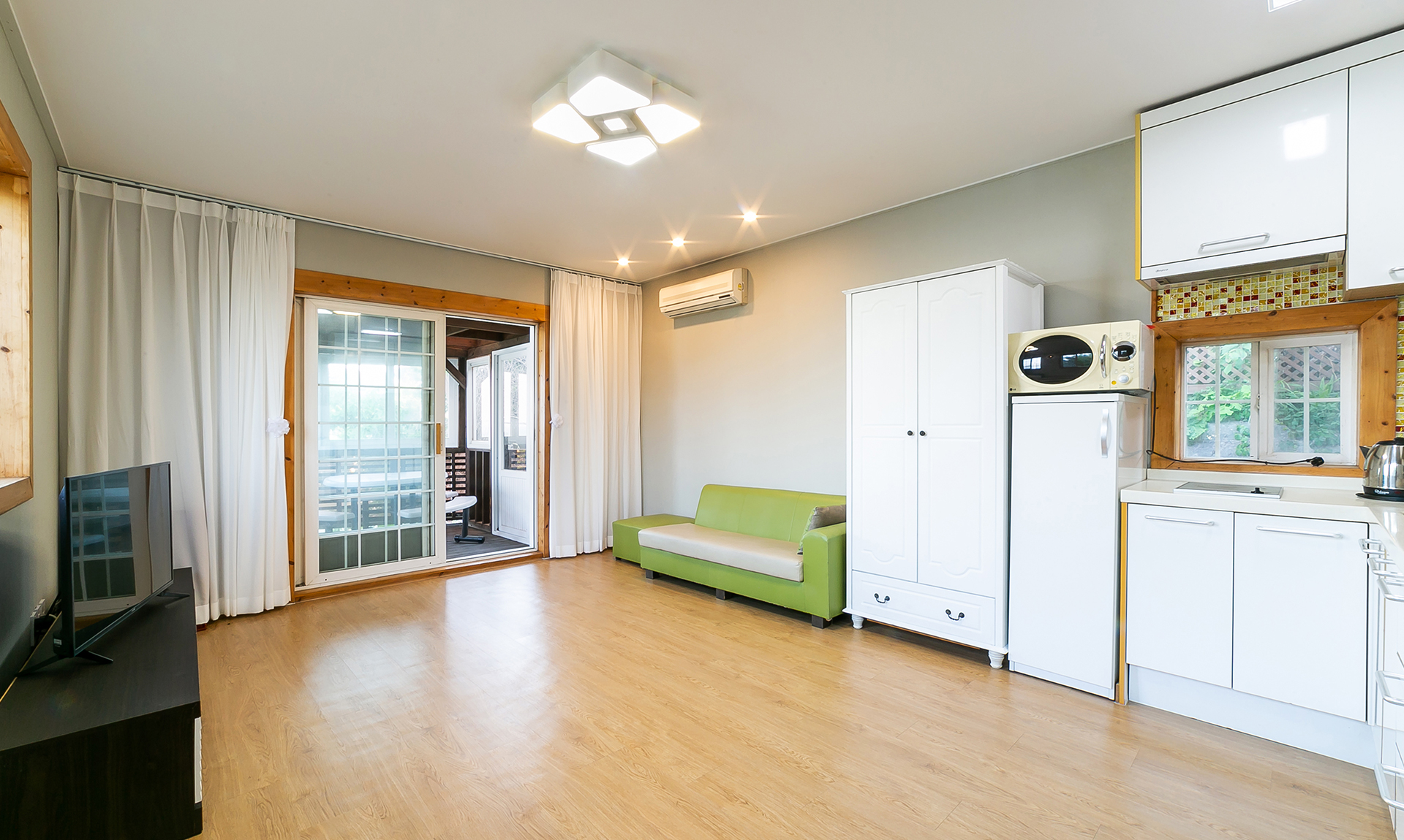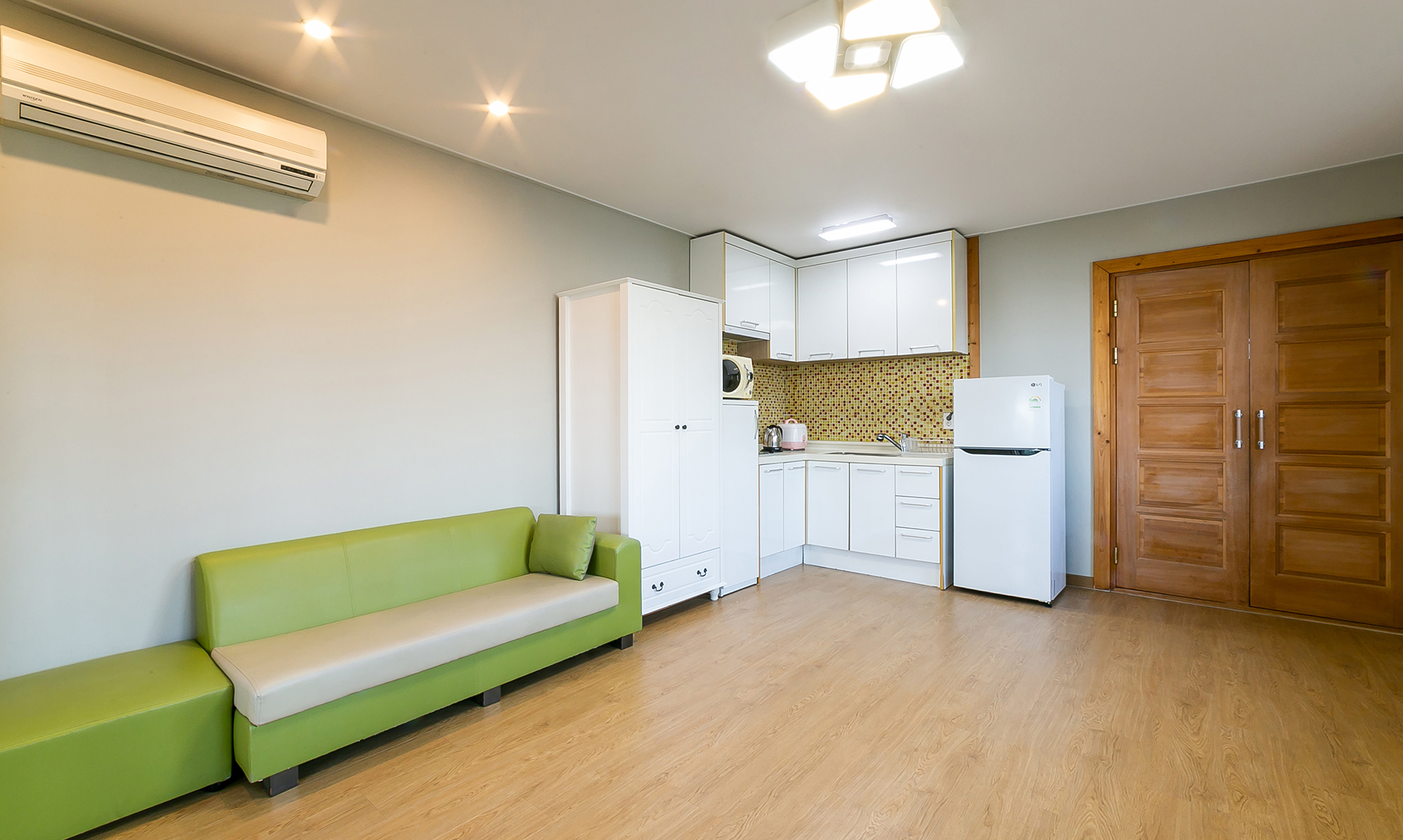 - 시설 : TV, 에어컨, 소파, 침대, 침구, 스카이라이프, 냉장고, 식탁, 전기쿡탑, 전자렌지, 전기밥솥, 취사도구 및 주방시설, 화장실, 샤워시설 (헤어드라이어, 치약, 비누, 샴푸 등)