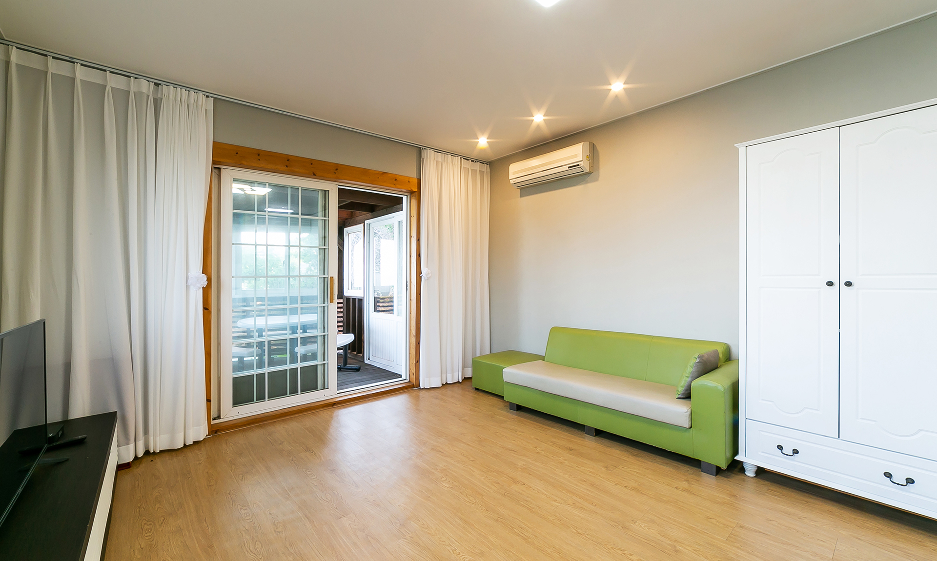 C동에 위치한 객실로, 객실 바로 앞에서 바베큐가 가능합니다.