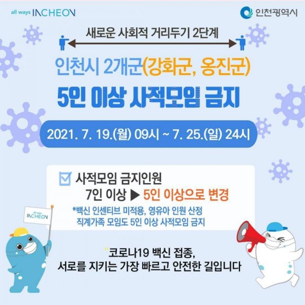직계 가족 모임도 5인 이상부터의 사적 모임 금지